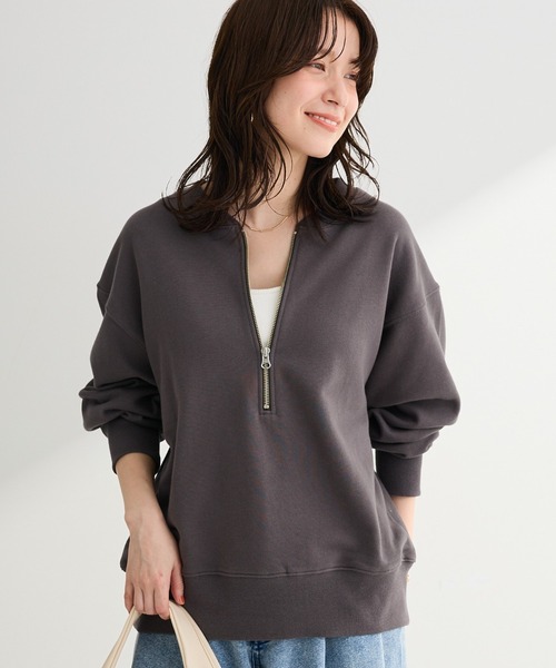 首元ジップで印象自在、毎日に寄り添う一枚やわらかな裏毛素材を使用し、ほどよい厚みで快適な着心地を叶えてくれます。ハーフジップ仕様がデザインのポイントになり、閉じれば落ち着いた印象に、開ければ首元がすっきりとして抜け感のある着こなしが楽しめます。インナーを合わせたレイヤードスタイルもしやすく、季節に応じたコーディネートが可能です。シンプルなシルエットは体のラインを拾いにくく、自然に体型をカバーしてくれます。デニムやきれいめパンツ、スカートとも相性が良く、日常使いからちょっとした外出まで幅広く活躍します。着回し力が高く、長く愛用できる一枚です。※モデル着用画像は、光の当たり具合で色味が違って見える場合がございます。※お使いのモニター環境によって商品の色味が違って見える場合がございます。●Green Parks (fuuwa / topic / sara)●(グリーン パークス)20以上の人気ブランドを取り扱う、全国に約320店舗展開するアパレルセレクトショップ。ベーシックながらもさりげなくトレンドを取り入れたオリジナルブランドchocol raffine robeも展開。▼ 商品のお気に入り登録がおすすめです ▼商品ページ内のハートマークをクリック。完売時の再入荷や、最後の1点の通知、コーディネート画像がアップされたとき、お得なお値下げの際の通知を受ける事ができます。【お知らせ】ページでも通知が確認できます。