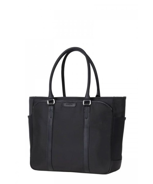 ・信頼感のあるシンプルなデザインのビジネスコレクション。 ・高強度と撥水性を備えたバリスティックナイロンと上質なレザーを使用。 ・PC収納部やビジネスツールの効率的な収納ポケットを装備。 ・抗菌加工ずみの内装生地にはリサイクルPETボトルを使用。 ・ダメージ軽減の底鋲とスマートスリーブ付属。 ・肩掛けしやすいハンドルが特長のトートバッグ。 ・フロントに小分けポケット、背面にクイックアクセスポケットを装備。 ・両側に伸縮性ネット素材のサイドポケットが付属。