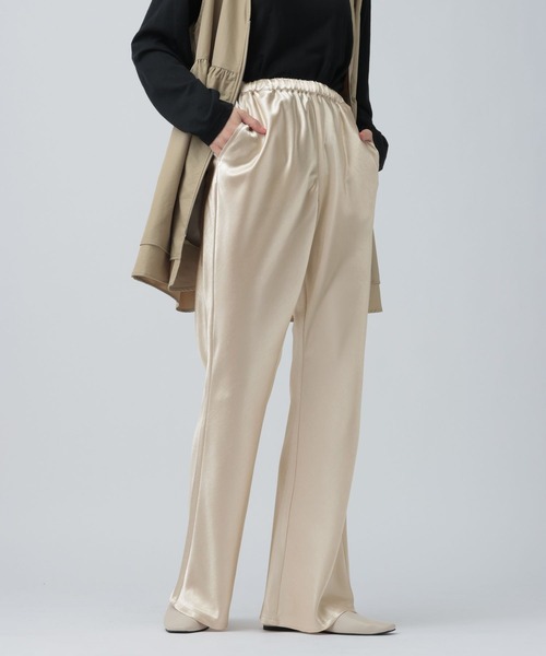 柔らかいサテン素材を使用した細身のフレアパンツ【デザイン】落ち感があり、身体のラインを拾いにくいフレアパンツです。艶感のある生地で女性らしい着こなしが叶います。ウエストもゴム仕様で、紐が付いているのでご自身のサイズに合わせて着用することができます。【スタイリング】・チュニック丈のベストと合わせたスタイリングがおすすめです。・デニムシャツと合わせた大人カジュアルスタイルも◎---------------------------------------------------【気になる商品はお気に入り登録がおすすめ!】・在庫残りわずか・再入荷・セールの情報などの通知を受け取ることができます。気になる商品は♡をクリックして、「お気に入り登録」しましょう!【ショップ・ブランドのお気に入り登録も!】新商品や再入荷、セール、クーポンの配布など、いち早くお得な情報を受け取ることができます。---------------------------------------------------