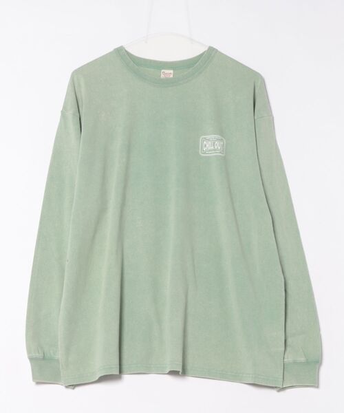 《デザイン》レトロ感のあるグラフィックをプリントしたフロスト加工長袖Tシャツです。全体にフロスト加工を施し、着古したようなフェード感と柔らかな表情をプラスしています。新品でありながら、時を経たようなヴィンテージ感溢れる奥行きのある風合いが特長です。左胸と後身頃にはプリントを施しています。「CHILL OUT. NO RUSH, JUST VIBES」焦らず、ただ心地よさを。というメッセージをプリントしています。慌ただしい日常から一歩距離を置き、自分のテンポで生きることを肯定する、静かで力のある言葉を落とし込んでいます。シルエットはトレンド感のあるゆったりとしたリラックスフィットです。1枚で主役になる存在感がありつつ、レイヤードにも対応するバランスに仕上げました。カラー展開は・ホワイト・ミント・マルチカラー(身頃:ブラック/右袖:ネイビー/左袖:ブラウン)の3色展開です。リラックスムードとメッセージを、さりげなく日常に落とし込んだ一着です。※フロスト加工を施しています。1点1点風合いが異なる場合がありますのでご了承ください。《素材》空紡天竺空紡糸もしくはオープンエンド糸(OE糸)と呼ばれる糸を使用した天竺素材です。空紡糸とは、その名の通り空気の渦の力によって撚られた糸のことです。糸に掛かる撚りが内側から外側に掛けて徐々に強くなっていくため、表面はシャリ感のあるやや硬めの風合いになり、内側にふっくらとしたボリュームがでるのが特長の糸になります。それにより、ドライタッチでザックリとしたナチュラルな硬さのある風合いの素材に仕上げてます。透け感:無し厚さ:普通伸縮性:有り光沢感:無し