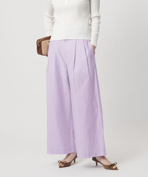 タックディテールが映える、軽やかで上品なワイドシルエット■デザインハイウエスト設定で、後ろ切替部分にシャーリングを施し、着心地の良さが魅力のタックワイドパンツ。フロントのタックディテールが、立体感のあるシルエットを演出します。オンオフ問わず着回しの利く一枚です。OFF WHITEはオフホワイトベースにダークグレーのピンストライプ柄です。■素材MANTECO社の先染め素材。タテ糸にナイロンフィラメント、ヨコ糸にコットンを高密度に交織し、仕上げにエンザイム(揉みこみ)加工を施しており、ナチュラルな表情感を出しています。■コーディネート同素材のブラウスとのセットアップはもちろん、フィット感のあるカットソーやニットとのコーディネートもおすすめです。・同素材の他アイテムのご用意もございます。ブラウス 対象品番:15211990030ワンピース 対象品番:15261990031============================裏地:なし(アンダーパンツ付き)透け感:ややあり伸縮:なし光沢感:なしケア方法:手洗い============================・アンダーパンツサイズ(cm)サイズS ウエスト60〜95 股上26.7 股下13 裾周り67 ヒップ103サイズM ウエスト63〜98 股上27 股下14 裾周り69 ヒップ106【注意事項】※商品に「取り扱い上の注意書き」、「洗濯表示」がございます場合は、使用前に必ずご確認ください。※商品画像は、光の当たり具合やパソコンなどの閲覧環境により、実際の色味と異なって見える場合がございます。あらかじめご了承ください。※画像の商品はサンプルです。実際の商品と色味、仕様、加工、サイズ、素材等が若干異なる場合がございます。店舗へお問い合わせの際は、全国のUNITED ARROWS各店舗まで下記の品名/品番をお申し付けください。品名:○UBCC MANTECO POP WIDE 品番:15141990030