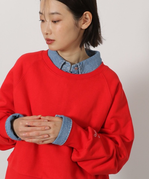 袖に刺繍を施したスウェットトップス。コンパクトなシルエットでもラグランスリーブで肩周りも稼働しやすくラフな着心地の1枚です。身幅にゆとりもあるのでインナーも合わせやすいデザインです。【素材】綿100%の柔らかく着心地の良い素材感。【スタイリング】ジャストの着丈は合わせるボトムも選ばずスタイリングできるので日常使いにもおすすめ。立体的なシルエットのコクーンデニムとの相性〇