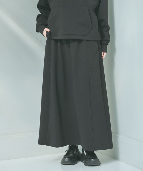 フレアなシルエットがポイントのスカート。ウエストにはゴムを使用し、スピンドルがアクセントになった1枚です。体のラインもひろわず、ラフな着心地なのもポイント。サイドの切り替えデザインで立体的なシルエットが楽しめます。【素材】やや凹凸のある表面感のある生地を使用。軽く肌ざわりの良い素材感です。【スタイリング】広がりのあるシルエットなのでコンパクトなトップスとの相性〇同素材のトップスとのセットアップスタイルもおすすめです。▼同素材のトップスはコチラブランド品番:650287ZOZO商品コード:103938013