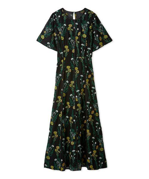 【優美なボタニカルフラワー刺繍に特別感が溢れるドレス】 【Design/Styling】 エレガントなエンブロイダリードレスは、シフォン生地に光沢を帯びた糸でボタニカルフラワーを描いたクチュール感漂うデザイン。 ベースを含め4色で構成したリュクスなFRAY I.Dオリジナルテキスタイルで、スペシャルにお作りしました。 フラワーモチーフは、縦のラインを意識した配置でどこかシャープで大人な表情に。 パネルラインにあしらったサテンパイピングも洗練されたムードを添えます。 シルエットは、身体にフィットしすぎすウエストからしなやかに広がるセミフレアで、ボディラインをきれいに演出。 後ろ中心にはゴムを入れており、さらにウエストに付けたベロアリボンでフィット感の微調整も可能です。 結婚式や二次会、会食などのお呼ばれにぴったりなセミオケージョンシーンにも活躍が期待できる一枚です。 色展開は全3色。肌馴染みのいいLBEG、ノーブルなNVY、色とりどりの刺繍が際立つBLKをご用意しました。 ※照明の関係により、実際よりも色味が違って見える場合があります。 またパソコン・スマートフォンなどの環境により、若干製品と画像のカラーが異なる場合もございます。予めご了承ください。 商品の色味は、商品単品画像をご参照下さい。 ※商品画像はサンプルのため、色味やサイズ等の仕様に変更がある場合がございますので、予めご了承ください。