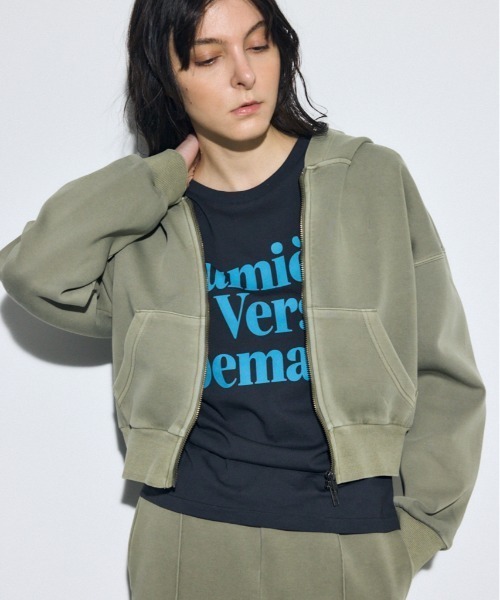 ■ピグメントダブルジップフーディー■ポイントピグメント加工がポイントのダブルジップのコンパクトなフーディー。■ディテールヴィンテージライクな加工を施していますが、ダンボール素材のためカジュアルすぎない質感がポイント。コンパクトなサイズ感でどんなボトムにも合わせやすいです。フードも大きめで小顔効果があります。袖口や裾はギャザーを寄せていて、ふわっとしたシルエットが女性らしいです。■スタイリング同素材のワイドパンツ(250JSB81-0671 ピグメントピンタックワイドパンツ)とセットアップ着用も可能です。ワイドボトムやハイウエストボトムとの相性が良いです。■生地程よく弾力のあるダンボール素材にピグメント加工を施しています。色の見え方やムラ、風合いには個体差がありますが、製品加工の特性です。透け感:なし裏 地:なし伸縮性:なし光沢感:なし[注意事項]※画像の商品はサンプルです。実際の商品と仕様、加工が若干異なる場合があります。※画像の商品は光の照射や角度、お使いのモニター環境により、実物と色味が異なる場合がございます。※着用、お取り扱いの際は、アテンションタグをご確認ください。※こちらの商品はAZUL BY MOUSSY独自の採寸方法となっています。本サイトのサイズガイドと採寸方法が異なる場合がありますのでご了承ください。[お気に入り登録のおすすめ]■商品のお気に入り登録お気に入りアイテムの再入荷・在庫1点などの通知を受け取ることができます。■ブランドのお気に入り登録新作アイテムの入荷や人気アイテムの再入荷、おすすめトピックスなど、いち早くブランドの情報を受け取ることができます。WINTER & SPRING ( 冬服 / 春服 ) ジップパーカー