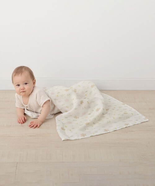 パリの赤ちゃんのお部屋で暮らす、ぬいぐるみたちの物語。 「Les premiers amis(レ プルミエ ザミ)」フランス語で赤ちゃんの「はじめてのお友だち」という名前のシリーズです。 うさぎのルイーズと、くまのアルチュール。 赤ちゃんが眠いときも、楽しいときも、ちょっぴり悲しいときも、いつでもそばで寄り添い、一緒に過ごしてくれる大切なお友だちです。 新生児期から使える2重ガーゼ仕立てのおくるみです。 うさぎのルイーズとくまのアルチュールのイラストをプリントしました。巻いたり、掛けたりとさまざまな用途に使いやすい厚さも特徴。少し成長してからもブランケットや授乳ケープ、ベビーカーの日よけとしてもお使いいただけます。かわいらしいパッケージ入りなのでギフトにおすすめです。 濃色製品は色落ちしますので他のものと分けて洗濯してください。洗濯前のつけ置きや濡れたままで長時間放置しないでください。 洗濯の際はネットを使用してください。 1点ごとに柄の出方が違うことがあります。 【パッケージ】縦21.5cm/横10cm/厚み5.3cm 【ガーゼおくるみ】縦120cm/横120cm