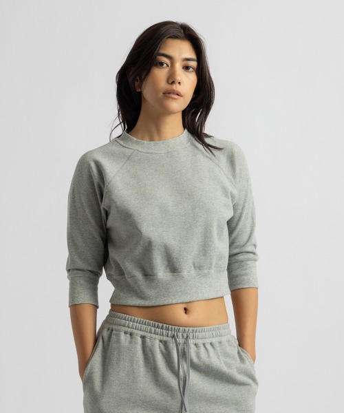 【Design】 薄手の裏毛素材を使用したショート丈スウェット。6分丈のラグランスリーブ。 【Point】 柔らかい素材感でリラクシングな着心地。オーガニック綿の自然な風合いが特徴です。 同素材のパンツとセットアップでも、単品でも楽しめます。 【Material】 オーガニックコットン/ミニ裏毛素材。 【Composition】 組成:(本体) コットン 100% (リブ部分) コットン 95% ポリウレタン 5% 【Country of origin】 原産国:MADE IN JAPAN 【Size Specs】 S/ 着丈 44.9 | バスト 102 | そで丈 44.9 M/ 着丈 46.4 | バスト 106 | そで丈 46.4 L/ 着丈 47.9 | バスト 110 | そで丈 47.9 ※画像の商品はサンプルとなります。 ※実際の商品と色味、仕様、加工、サイズ、素材等が若干異なる場合がございます。 Item Code:BBM36040