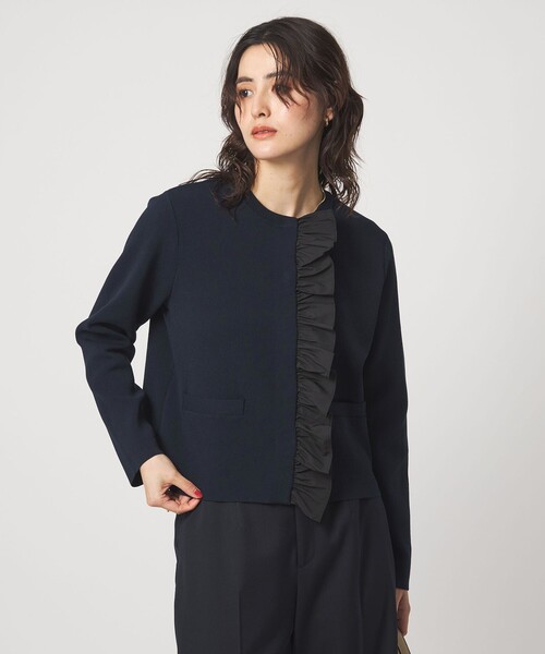 大人フェミニンな着こなしが叶うニットカーディガン ■デザイン フロント部分にフリルをあしらった大人フェミニンな印象のニットカーディガン。 さらっとボトムスに合わせるだけで華やかな印象に◎ 羽織としてはもちろん、ボタンを閉じてトップス風の着こなしもおすすめ。 デイリー使いはもちろんのこと、お仕事・セレモニーシーンでも活躍する一着です。 ■素材 程よい肉感のあるニット素材に、フロントには異素材のフリルをあしらったデザイン。 ■コーディネート ワイドパンツで合わせたクールな着こなしがおすすめ。 オフの日にはデニムを合わせてカジュアルな雰囲気にも◎ #春服,#オンオフ兼用,#仕事,#デイリー,#通勤,#カジュアル#フォーマル,#オケージョン,#セレモニー,#セレモニーアイテム,#セレモニー服,#卒業式,#入学式,#卒園式,#入園式 ============================ 裏地:なし 透け感:なし ケア方法:手洗い可 ============================ 【注意事項】 ※画像の商品はサンプルです。 ※商品に「取り扱い上の注意書き」、「洗濯表示」がございます場合は、使用前に必ずご確認ください。 ※商品画像は、光の当たり具合やパソコンなどの閲覧環境により、実際の色味と異なって見える場合がございます。あらかじめご了承ください。 ※商品の色味の目安は、商品単体の画像をご参照ください。 店舗へお問い合わせの際は、全国のgreen label relaxing各店舗まで下記の品名/品番をお申し付けください。 品名:CS HW フロントFRL CD 品番:35281000014