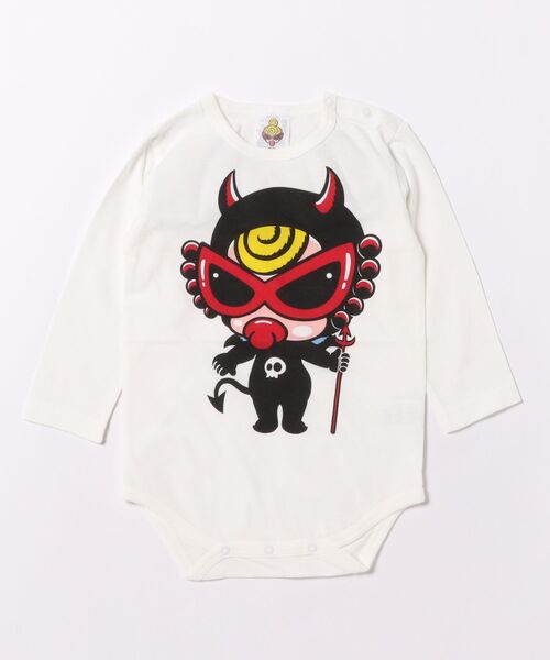 フロントのぷっくりとした頬が可愛らしいDEVILKINの長袖ロンパースに立体的なDEVILKINの羽をバックにオン☆遊び心ある1枚はギフトにも喜ばれること間違いなしなスペシャルなアイテムです。レッグウォーマーなどと合わせてコーディネートを楽しむのもお勧めです。