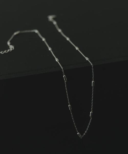 素肌の上で繊細な光が踊るステーションネックレス。 極細のチェーンに小さなメタルパーツを等間隔にあしらい、シンプルながらも奥行きのある表情に仕上げました。 主張しすぎないミニマルなデザインが肌に馴染みやすく、女性らしい華奢な首元を演出します。 お手持ちのネックレスとのレイヤードも美しく決まり、日常の装いにさりげないクラス感をプラスしてくれるタイムレスな一本です。 ▼色違い(GLD)のご用意もございます▼ SM26930-2241006 station chain necklace 【SMELLY so(スメリー ソー)】 soとはアイルランド語で贅沢。 毎日のスタイリングに溶け込むデザインでありながら、さらに個性を引き出す。 身につけるものに敏感になった今の時代に、永く寄り添ってくれるをコンセプトとして、SMELLYから誕生したジュエリーライン。 少しだけ特別なジュエリーをつけて、少しだけ贅沢な気持ちになるように。 ポジティブな日常を送っていただけるようにと願いを込めて。 ※SLV925は汗、皮脂、薬品等に反応し変色する特性がございますのでご使用後は柔らかい布で汚れをふき取って保管してください。 ※ゴールドカラーはゴールドメッキを施しています。 ※アクセサリーはデリケートな素材を使用しているため、強く引っ張ったり、強い衝撃を与えると破損してしまう可能性があり、パールや天然石を使用した商品は熱と衝撃に弱い特性がございますので十分にお気をつけてご使用ください。 ※アクセサリーはデリケートな素材を使用しているため、強く引っ張ったり、強い衝撃を与えると 破損してしまう可能性がありますので十分お気を付けください。また汗、皮脂等が付着していると黒ずみや変色の原因となりますのでご使用後はシルバークロス、もしくは柔らかい布でお手入れして下さい。また、黒ずみが気になる場合はシルバークリーナーやゴールドコーティング対応のクリーナーをご使用ください。 ※温泉や海水浴等での着用は変色の原因となる可能性がありますので、外してしていただくことをお勧めします。 ※SLV925自体はアレルギー反応が出にくい金属ですが、全ての方にアレルギー反応が出ない訳ではございません。着用中、発疹、かゆみ、赤み、ただれなどの症状が出た場合はすぐに着用をやめていただき専門医にご相談ください。 総重量 : 約2g ※商品画像は、光の当たり具合やパソコンなどの閲覧環境により、実際の色味と異なって見える場合がございます。予めご了承ください。 ※商品の色味の目安は、商品単体の画像をご参照ください。 ▼お気に入り登録のおすすめ▼ お気に入り登録された商品は、マイページにて現在の価格情報 -