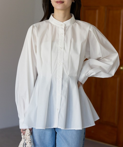 ◆◆忙しい朝もこれ一枚でサマになる◆◆ ウエストタック入りで、1枚で“きちんと感”が完成するバンドカラーブラウス。 ヒップが隠れる安心丈で、オフィスから休日まで幅広く活躍します。 ◆Design◆ ウエスト部分にタックを入れ、自然なフレアシルエットに仕上げた体型カバーが叶うきれいめブラウス。 お腹まわりやヒップラインをさりげなくカバーしながら、すっきりとしたバンドカラーで大人らしい印象に。 着丈は約65cmで、パンツ・スカートどちらにも合わせやすいデザインです。通勤・オフィススタイルにはもちろん、 デニムと合わせたカジュアルコーデにもおすすめ。 オンオフ問わず着回しできる万能アイテムです。 生地は綿とポリエステル混でシワになりにくく、デイリー使いしやすいのもポイント。 忙しい毎日でも扱いやすい一枚です。 ◆Design point◆ ・ウエストタックで体型カバー ・ヒップが隠れる安心丈 ・きれいめにもカジュアルにも着回し可能 ・通勤/オフィス対応 ・シワになりにくい素材感 ◆Styling◆ きれいめからカジュアルにもスカート、パンツまで幅広い着回しのきくブラウスです。 【カラー】 オフホワイト/ブラック/ブルー 【素材】 ポリエステル80% 綿20% 洗濯:手洗い可 ◆◆お買い物をより楽しむために◆◆ ♪商品のお気に入り登録 お気に入り登録した商品は、ラスト一枚の通知、完売商品の再入荷通知などお受けする事ができます。 ♪PREFERIR(プレフェリール)のお気に入り登録 新商品の発売、再入荷、タイムセールの通知などお得な情報をお受けできます。