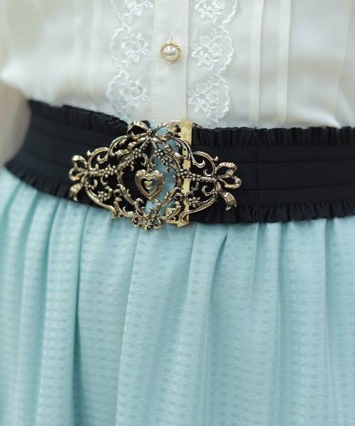 【アイテム説明】 【商品紹介】 ガーリーコーデにぴったりなオリジナルバックルのゴムベルト 【デザイン】 リボンやハート、小花などのガーリーなモチーフをあしらった、オリジナルのバックルがポイントのゴムベルトです。 ハート型のチャームが揺れる、遊び心のあるデザイン。 ベルト部分は上下のフリル使いがポイントになっています。 やや太めのゴムベルトを使用し、ウエストマークしてコーディネートのポイントになります。 柔らかいゴムを使用しているので付け心地も◎。 【コーディネート】 POETIQUE のスカートやワンピースに合わせることで、コーディネートにメリハリがつき引き締まった印象に仕上がります。 ▽ axes femme POETIQUE * アクシーズファムポエティック 【Concept】 一編の詩のように紡がれる、 柔らかな色や優しいモチーフに心を弾ませて。 夢見る気持ちを忘れない、とっておきのクローゼット。 フリルやオリジナルプリントをあしらったガーリーなアイテムと デイリー使いにもおすすめのトレンド感もあるガーリーカジュアルなアイテムで 王道ガーリースタイルからミックスコーデまで様々な着こなしがお楽しみ頂けます。 ********************** .。.: お気に入り登録のおすすめ :.。. ∇気になるアイテムを登録∇ ハートをクリックしてお気に入りに登録すると 完売カラーの再入荷やラスト1点の通知、セールの通知を受けとることができます。 ∇ブランドを登録∇ 新商品や再入荷、セール通知など、いち早くブランドの情報を受けとることができます。 是非ご利用頂き、お買い物をお楽しみ下さい。 .。.: 商品について :.。. ・サイト上のカラー名と、お届け商品に記載されているカラー名が異なる場合がございます。 ・商品の色味は、撮影場所や光のあたり具合、お客様のお使いのPCのモニター環境などにより色味が違って見える場合がございます。 予めご了承の上ご注文下さい。 .。.: 返品・キャンセルについて :.。. ・着用、洗濯後の返品は致かねます。 ・商品到着後、着用前に商品を確認して頂きますようお願い致します。