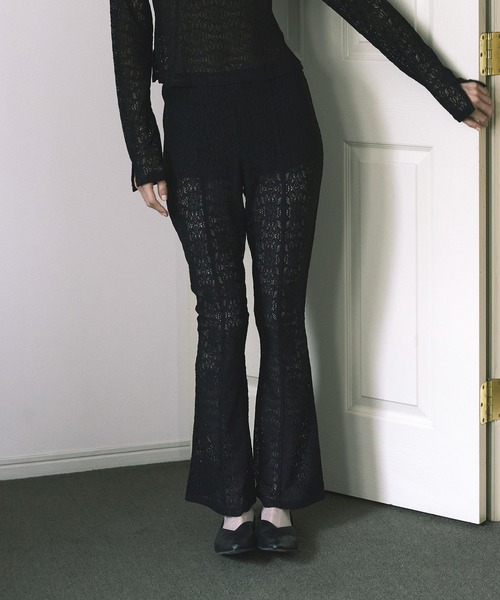 【レーステクスチャーフレアパンツ】繊細なレースを贅沢に使用した、存在感のあるフレアパンツ。腰まわりはすっきりと、裾にかけて美しく広がるシルエットが脚のラインを綺麗に演出します。甘さを抑えたモードなレース柄が、スタイリングに奥行きと抜け感をプラス。ワンピースやスカートの下にレイヤードすることで、コーディネートの鮮度を高めてくれます。程よいフレア分量が動くたびに軽やかな表情を演出。裏地付きの仕様で、透け感を楽しみながらもインナーが響きにくい安心設計。レースアイテムながら、気負わず取り入れられるのも魅力。トップスとのセットアップはもちろん、異素材とのミックスもおすすめ。日常使いから少し特別なシーンまで、幅広く活躍する一本です。KTWR59中国製素材:ポリエステル95%/ポリウレタン5%サイズ: F ウエスト上がり:65cm 丈:90cm ヒップ:88cm 裏地丈:21cmー備考 ー伸縮性:あり透け感:なし 〇〇〇〇● あり生地の厚さ:薄い 〇〇●〇〇 厚い洗濯:可 ウエットクリーニング:可ーAttentionー●着用中はバッグ・ベルト・アクセサリー等、表面の粗い ものとの摩擦、引っかけにご注意下さい。●型崩れを防ぐ為、洗濯後は平干しをして下さい。 また、ハンガーにかけておくと型崩れしますので、畳んで 保管して下さい。●この商品は非常にデリケートな商品です。着用の際もなるべく丁寧なお取り扱いをお願いいたします。※商品のお色味は、お使いのバイスや撮影時の照明等により、実物と若干異なって見える場合がございます。また、撮影ではサンプルを使用しておりますため、実物の商品と若干サイズ感や仕様が異なる場合がございます。※お取り扱いにつきましては、品質表示とアテンションタグを必ずご確認下さいませ。【kiehtova -キエトバ-】無駄のないミニマルな様式美をコンセプトに、いつまでも美しく身につけられる実用性を追求したデザイン。シンプルなコーディネートを格上げするこだわりのジュエリーなど芯の強い女性のトータルコーディネートを提案します。《お気に入り登録》でお得な情報盛りだくさん・“商品のお気に入り登録”で再入荷通知やラストの通知、セール通知も受け取ることができます。・“ブランドのお気に入り登録”で新商品や再入荷など、お得な情報を受け取ることができます。※ご注文いただいた予約商品のお届け時期の確認は、注文履歴ページより行えます。