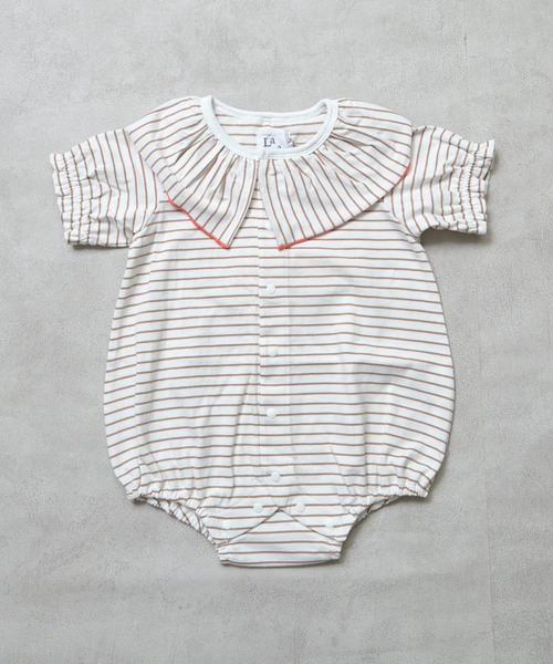 【LaStella】 やわらかな綿100%にメロウカラーがさりげないポイント ■デザイン ボーダー柄に、首元のメロウカラーで表情をプラスしたボディシャツです。 1枚で着映えしつつも主張しすぎないデザインで、デイリーに取り入れやすい1着です。 ■スタイリング サロペットやボトムのインナーに合わせるだけで、首元がアクセントになり写真映えも◎。 シンプルな羽織りやカーディガンの下にも合わせやすく、色違いで揃えるのもおすすめです。 ■生地感 柔らかい肌触りの綿100%素材です。 夏は涼しく冬は暖かく、丈夫で型崩れしにくいので普段使いしやすい生地感です。 ※モデルが着用している画像は、照明や日光などの撮影時の環境により実物と異なる色味になる場合がございます。 商品単体の平置き画像を実物に近いお色味になるよう努めておりますので、お色味のご確認は平置き画像をご参照くださいませ。 ※お使いのモニター環境によっても実物のお色味と異なって見える場合がございます。予めご理解の程よろしくお願いいたします。 ハートマークをポチッ! 気になる商品はお気に入り登録をお忘れなく! 商品のお気に入り登録をすると... [再入荷][残り1点][セール情報]を受け取れます。 MARKEY'Sをお気に入り登録すると... [新商品][再入荷]の情報をいち早く受け取れます。
