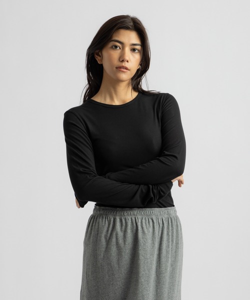 【Design】柔らかなタッチが心地よい、フィット感のあるロングスリーブTシャツ。【Point】長めの袖丈でレイヤードに最適。さりげないステッチワークがアクセントになります。【Material】伸び感と柔らかさが特徴のテンセルストレッチ素材。【Composition】組成:再生繊維(セルロース) 93% ポリウレタン 7%【Country of origin】原産国:MADE IN JAPAN【Size Specs】S/ 着丈 56 | 肩幅 31.5 | バスト 67 | そで丈 64.2M/ 着丈 58 | 肩幅 33 | バスト 70 | そで丈 65.5L/ 着丈 60 | 肩幅 34.5 | バスト 74 | そで丈 66.8※画像の商品はサンプルとなります。 ※実際の商品と色味、仕様、加工、サイズ、素材等が若干異なる場合がございます。Item Code:BBM06050