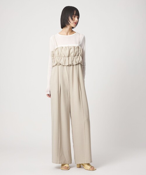 ギャザーデザインがフェミニンに着られるサロペット■デザイン胸元のビスチェ風のギャザーデザインがポイントのキャミ型サロペット。ほど良くゆとりのあるシルエットながらフェミニンに着ていただけます。■素材程よいツヤ感と落ち感のある軽やかな素材。■コーディネートインナーはシアートップスや繊細なニット合わせがおすすめ。ジャケットに合わせてもフロントポイントが映える一枚。#春服,#春物,#夏服,#夏物,#26SS,#サロペット,#オールインワン,#レイヤード============================裏地:あり透け感:ややあり伸縮:なし光沢感:ややありケア方法:ドライクリーニング============================< EMMEL REFINES(エメル リファインズ) >Pleasure ~今を楽しみ、変化を楽しむ~EMMEL REFINESは変化していく時代やトレンドを恐れなく前向きに楽しみ、今に満足せず常に自分を更新していきたい、自分らしさを表現したい女性に向けたブランドです。女性の共感を大切に、時代にフィットした新しいスタイルを提案します。【注意事項】※画像の商品はサンプルです。実際の商品と色味、仕様、加工、サイズ、素材等が若干異なる場合がございます。※工場の生産の都合上、納期が変更になる場合がございます。発送日の前後についてはあらかじめご了承ください。※入荷状況により、お客様への発送が店頭販売より遅れる場合もございます。※商品に「取り扱い上の注意書き」、「洗濯表示」がございます場合は、使用前に必ずご確認ください。※商品画像は、光の当たり具合やパソコンなどの閲覧環境により、実際の色味と異なって見える場合がございます。あらかじめご了承ください。※商品の色味の目安は、商品単体の画像をご参照ください。お問い合わせの際は、ユナイテッドアローズ カスタマーサービスデスクまで下記の品名/品番をお申し付けください。品名:EM ビスチェライク イージー サロペ 品番:66261000010