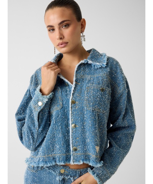 デニムの表情とツイードならではの立体感を掛け合わせた、存在感のあるデニムツイードジャケット。表面に凹凸のある素材感が特徴で、シンプルなスタイリングに取り入れるだけで奥行きのある印象を演出します。シャツカラーとフロントボタン仕様により、程よくきちんと感がありながらもカジュアルに着用できるバランスに仕上げられています。フロントには実用性を兼ね備えたポケットを配置し、ディテール面でもアクセントをプラス。ロングスリーブ仕様で季節の変わり目にも取り入れやすく、軽く羽織るだけでスタイリングが完成します。デニムパンツと合わせた統一感のあるコーディネートはもちろん、シンプルなトップスやワンピースに重ねることで、程よくカジュアルダウンした着こなしも楽しめます。セットアップ品番(スカート):W6RD0CD6871※商品画像はサンプルのため、色味やサイズ、仕様等に変更が生じる場合がございますので、予めご了承ください。