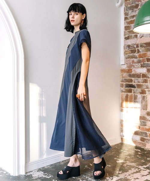 コットンベースの薄手でキレイ見えするスムース素材をメインに、 しなやかなタフタと格子メッシュを切り替えたワンピース。 【FABRIC】 透け感:なし 厚さ:薄手 伸縮性:あり 裏地:なし ポケット:あり 【DESIGN】 斜めに捻れるようなラインで切り替えることで、 デザイン性と細見え効果も期待できるワンピース。ウエストをシェイプするわけではなく、 ストレートラインで裾だけフレアを出すことで、リラックス感がありながら、 すっきりとスタイルよく見せられる、シルエットにもこだわったワンピース。 肩先のメッシュ、胸元のポケット、表出しの縫い代などキャッチーなディテールも目を引く、 夏にさらりと着こなしたい1着。 ※生産の都合上、商品の納期が変更となる場合がございます。 ※商品の画像はサンプルのため、実際の製品とは仕様や加工、サイズ等が若干異なる場合がございます。 ----------------------------- - AULA AILA - (アウラアイラ) 自分らしさを大切にしながら、 魅力を引き出し、 何気ない日常に彩りを添え、 纏うという高揚感から心を豊かにする、 大人のハイエンドカジュアル ・商品のお気に入り登録 完売カラーの再入荷通知や、ラスト1点、セールの通知をお知らせ致します。 ・ブランドお気に入り登録 新商品や再入荷など、いち早くブランドの情報を受け取ることができます。