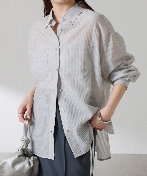 季節の変わり目に便利に活躍するシアーシャツ 【POINT】 ・毎年好評のシアーストライプシャツがブラッシュアップして再登場。 ・身幅にゆとりを持たせたリラクシーなサイズ感でありながら、背中部分のループでボタンを留めると 自然とくびれるシルエットで着られるようになっています。 ・ループで留めた際にもすっきり見えるよう、落ち感のある柔らかい素材を使用しています。 ・ストライプ柄の上からさらにステッチを叩いて柄を目立たせているので、 ストライプシャツをすでにお持ちの方でも新鮮な気持ちで着ていただける1枚です。 【おすすめコーディネート】 シアーシャツですが品のあるカラー展開でスラックスやきれいめスカートを合わせればお仕事にも活躍します。 タンクトップやロゴTシャツにさらっと羽織った大人カジュアルもおすすめです。 【おすすめのスタイリングアイテム】 ・シェルタリング3タックパンツ CLZ1061302A0001 ・トラックIラインスカート CLZ1061301A0002 【素材】 再生繊維(セルロース61%, ナイロン34%, ポリエステル5% 透け感:あり 裏地:なし 伸縮性: 光沢感:なし おすすめ着用時期:春、夏、秋 洗濯:手洗い可 ≪返品・交換・修理について≫ ・着用後、洗濯後の返品・交換は致しかねます。 ・商品到着後、着用前に商品状態のご確認をお願い致します。 ・ECサイトでご購入いただいた商品は、お修理を承っておりません。 【気になる商品は「お気に入り」登録を】 ハートマークをクリックし、お好きなカラーを選んでお気に入りに登録すると 入荷情報や残り1点の通知、完売カラーの再入荷、セール情報などを受け取ることができます。 ※撮影場所やお使いのモニター環境により若干お色味が異なる場合がございます。 特にロケの撮影では明るく見える傾向にございます。詳細撮影画像で色味をお確かめくださいます様お願いいたします。 ※サンプルで撮影をしております。若干の仕様が変更になる場合がございますので予めご了承の上ご注文くださいますようお願いいたします。 ※サンプルでの採寸のためあくまで目安となります。予めご了承ください。