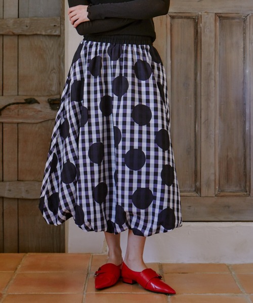 丸みのあるシルエットがきれいなバルーンスカート。チェック×ドットが個性的。ウエストはオールゴムでポケット付き。シーズンレスで着用できるアイテムでTシャツからニットまでコーディネート次第で長く楽しんでいただけます。------------------------透け感/なし光沢感/ややあり伸縮性/なし厚 み/普通洗濯方法/ 手洗い推奨ポケット/あり裏地/あり------------------------※ご注意※・詳しいお手入れ方法は商品タグをご参照ください。・屋外の光や照明の当たり具合で、実際の商品の色味とカラー別画像の色味に若干の違いが発生する場合がございます。・詳細画像と併せてご確認の上、ご注文いただきますようお願いいたします。・撮影サンプルと量産分で生産ロットが違う場合、風合いに多少のブレが生じることがございます。manana suerte (マニャーナ スエルテ)"明日着るのが楽しみなお気に入りの服"遊び心のある自由で開放的なムード多様な色彩、テキスタイル着る人の個性を引き立たせるデザインと、着心地のよさを兼ね備えたアイテムを展開します。manana suerte公式Instagram → @manana_suerte【商品のお気に入り登録】完売カラーの再入荷通知やラスト1点の通知プライスダウンの通知も受け取ることができます。【ブランドのお気に入り登録】新商品や再入荷など、ブランドの情報をいち早くお知らせいたします。ぜひご登録ください◎