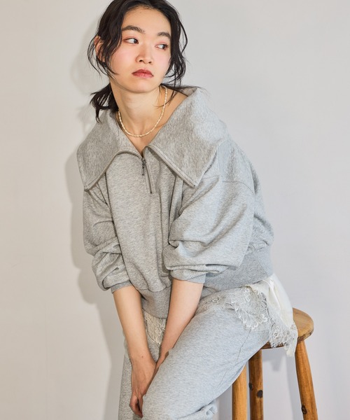ーーー顔周りをすっきり見せる大きな襟と、抜け感のあるコーディネートが楽しめる一着■point・ハーフZIPデザインの裏毛プルオーバー・綿84%、ポリエステル16%で、肌触りが良く快適な着心地・大きな襟が顔周りをすっきり見せ、スタイリッシュな印象に・着丈はショート丈に設定し、ボリュームのあるシルエットをバランス良く設計ーーー■styling着こなし方で様々な表情に変わるジップスウェット。ジップを開けて襟を抜いた着こなしは、アクセサリーをプラスワンすることでこなれた雰囲気に。レースキャミやレギュラーシャツのレイヤードコーデも今っぽく仕上がりお勧めの着こなしです。同素材のパンツ(品番:668083)とのセットアップは足元にヒールを合わせてキレイ目に、小物やバッグでポイントをつくるとGOOD!【INFOMATION】■商品のお気に入り登録完売していても再入荷時に再入荷通知を受け取ることができますので、是非ご登録ください!■ブランドのお気に入り登録新商品や再入荷などの情報を受け取ることができますので、是非ご登録ください!※ご注文いただいた予約商品のお届け時期の確認は、注文履歴ページより行えます。
