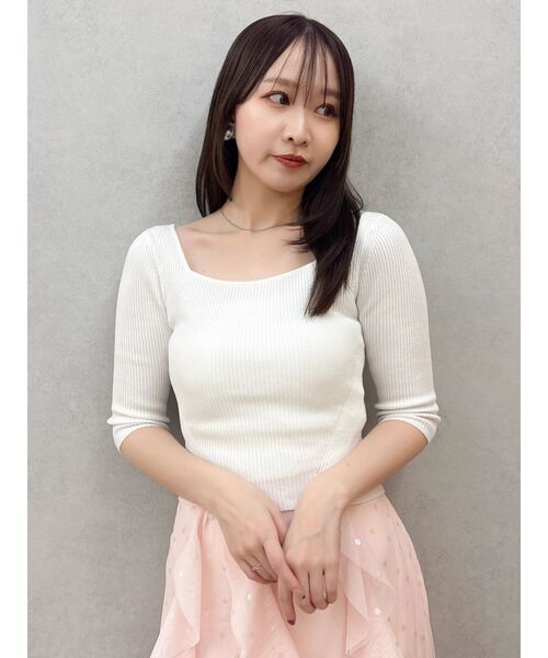【商品】バックスタイルに視線を惹きつける、太めのリボンが印象的なタイトニットトップス。 ウエストをシェイプさせた編地設計で、自然にくびれを演出しスタイルアップ効果も◎抜け感のある大人フェミニンな印象に仕上げました。一枚でどんなボトムにも合わせやすい万能さを兼ね備えた一着。【スタイリング】フレアスカートと合わせれば、リボンの甘さを引き立てたフェミニンコーデに。 マーメイドスカートやタイトスカートと合わせて、レディライクな着こなしもおすすめ。 デニムやワイドパンツを合わせて、リボンをアクセントにした大人カジュアルスタイルにも。※実際にお届けする商品と仕様やサイズが異なる場合がございます。また生産の都合上、お届け時期が前後する場合がございます。【 お買いものにおすすめの便利機能! 】★商品のお気に入り登録完売カラーの再入荷時や、ラスト1点の時、セール開始時にお知らせします。★ブランドのお気に入り登録新商品や再入荷、セール情報など、いち早くブランドのお得な情報を受け取ることができます。ぜひご活用ください。