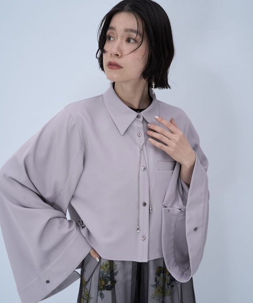 ーーー ジャポニズム要素を取り入れた角袖がモードな印象のデザインシャツ ーーー point □大きめの角袖がジャポニズムとモードを演出 □袖下はファスナー付きで開閉可能のため気温対応ができるデザイン □袖のボタンで袖幅の太さ調節が可能な為、コンパクトにしても着用できる □裾のレースアップで女性らしさをプラス □カラーによって素材が異なり、印象が変わるデザイン ・ブラック09はややしわ感のある生地で春夏らしい ・パープル90、グレー11は落ち感のあるポリ素材で取り扱いしやすい styling 骨格ナチュラル:タンクトップやTシャツの上から羽織って着るとラフさが出ます。袖のファスナーを開けて抜け感を出すことでフレーム感がなくなります。デニムやカーゴなどのカジュアルなアイテムとも相性◎ 骨格ウェーブ:裾を絞りウエスト位置を高く見せるとスタイルアップになります。大ぶりのネックレスを足して、視線をさらに上に集めるとバランスが整いになります。 骨格ストレート:広がりすぎないAラインやストレートシルエットのすっきりしたボトムスがオススメ。裾は絞りすぎず、ボックスシルエットにして着るとよりモードな印象に。 ※加工を施した画像を使用しております。 実物と色味が異なる可能性があるため、色味は詳細後ろにある生地寄り画像を参考にお願いいたします。 あらかじめご了承下さい。
