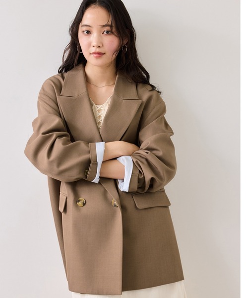 【2026 Spring】【26SS】 <POINT> ・通年着れるさらっとした生地感 ・ピークドラペル ・お尻隠れるオーバーサイズシルエット ・ダブルブレストジャケット ・裏地がブルーストライプで春らしい 【デザイン・シルエット】 VIS定番人気のシルエットのオーバーサイズジャケット。 今年はダブルブレストジャケットのままですが、ボタン止めは1つだけでボタン位置を上げて、腰位置を高めに見せれるようにデザインしました。さらっとした通年着れる素材感も◎ 【素材】 さらっとした合繊素材 【カラー】 チャコール、キャメルの2色展開。 【おすすめのスタイリング】 一番おすすめは雑貨にレースの付け襟があるので、それを合わせるのがとってもかわいい!! ボトムスは今年は細身のアイテムでIラインシルエットを出すのがおすすめ!! ----------------------------- 裏地:あり 光沢感:なし 透け感:なし 伸縮性:なし ポケット:あり ボタン:あり(開閉可) 生地の厚さ:普通 その他仕様:裏地はストライプ柄仕様 季節:春、秋 ----------------------------- 【モデル着用サイズ】 モデル身長:160cm 着用サイズ:F ※画像の商品はサンプルです。 実際の商品と仕様、加工、サイズが若干異なる場合がございます。 ※画像によっては実際の色味と異なる場合があります。正しい色味は生地アップ画像をご確認ください。