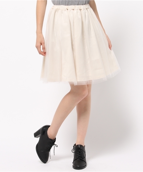 フレンチカジュアルで可愛さをチュールスカートで演出。 スニーカーからブーツまで幅広く合わせやすいスカート。