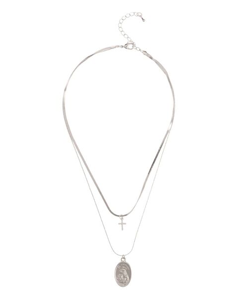 細いチェーンと平らなチェーンを重ねた2連ネックレスです。コインモチーフがさりげないポイントになりシンプルながら存在感をプラス。どんなコーディネートにも合わせやすくデイリー使いにぴったりのアイテムです。