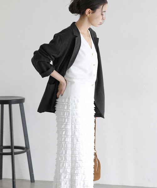 【2026SS】 LaTotalite 《WEB限定カラーあり!羽織るだけでサマになるジャケットが登場!》 ナチュラルな風合いが魅力のリネン混ジャケット。 素材は麻を使用することで軽やかでシーズンムード漂う質感に。 シワになりにくく、いつでもきれいな状態で着用できるようにこだわりました。 シルエットは程よくゆとりのあるボックス型で、暑い日でもリラクシー。 袖をラフにロールアップすればこなれた抜け感を演出できます。 自宅で洗えるイージーケア仕様なので、デイリー使いしやすいのも嬉しいポイント。 きれいめにもカジュアルにも合わせやすい、ワードローブに加えたい万能ジャケットです。 ※ホワイト(010)はWEB限定カラーです。 ********************** 透け感:あり 裏地:なし 伸縮性:なし 光沢感:なし 生地の厚さ:普通 ********************** 【スタッフ着用コメント】 《スタッフ名:mizuki》 身長:160cm/体型:普通/普段サイズ:S~M/着用サイズ:38 サイズ感:ゆとりのあるシルエットながらもオーバーサイズ過ぎずに女性らしさをキープ 素材感:リネン混のドライタッチな質感。 着心地:軽やかな着心地。ナチュラルな素材なので清涼感もあります。 ********************** ※お取り扱いについて 001(ブラック) 他の製品に色が映ることがありますので、単独で洗ってください。 ※取り扱いについては、商品についている品質表示でご確認ください。 ※照明の関係により、実際よりも色味が違って見える場合があります。 またパソコン・スマートフォンなどの環境により、若干製品と画像のカラーが異なる場合もございます。 ※商品の色味は、商品アップ画像をご参照ください。 着用モデル身長: 162cm 着用サイズ:38 本体:手洗い可能