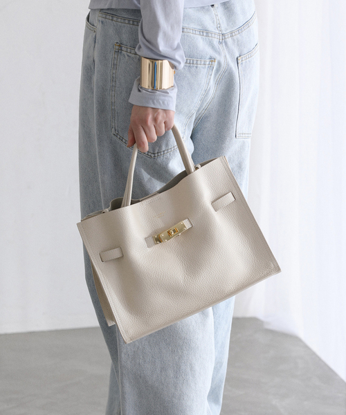 先方品番:V-1496※サイズについて弊社販売サイズ:メーカーサイズフリー:M※カラーについて弊社販売カラー:メーカーカラーナチュラル(016):別注カラーブラウン(020):別注カラーブルー(044):BLUE GRAY【2026SS】LaTotaliteエレガントな印象を与えながらも程よいラフさを演出してくれるイタリアンレザーのトートバッグ。2枚の革を貼り合わせる一般的なダブルフェイスとは違い、1枚の革を加工によってダブルフェイスに仕上げているため、革のしなやかさと軽さが際立ちます。コンパクトな見た目ながらも長財布や500mlのペットボトルが収納可能。ショルダーストラップ付きなので肩掛けや斜め掛けが出来る2way仕様です。ゴールドの金具やターンロック付きのベルトがアクセントになり、コーディネートを上品な印象に仕上げてくれます。※通常販売時にはブルー(044)のお取り扱いもございます。※取り扱いについては、商品についている品質表示でご確認ください。※照明の関係により、実際よりも色味が違って見える場合があります。またパソコン・スマートフォンなどの環境により、若干製品と画像のカラーが異なる場合もございます。※商品の色味は、商品アップ画像をご参照ください。