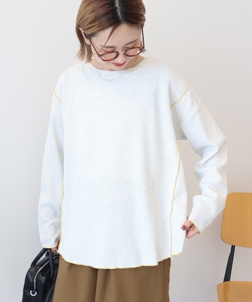 人気だったカットソーがWEB限定で再登場! 配色メローを効かせたワッフル生地のデザインプルオーバー。凸凹のある表面感で通気性も良く、1日中快適な着心地。 体のラインを拾わないルーズなボックスシルエットも魅力的。 ワイドパンツに合わるだけで今年らしいメンズライクなスタイリングが完成するおすすめのアイテムです。 透け感[なし] 生地の厚さ[普通] 光沢感[なし] 伸縮性[あり] 裏地[なし] ポケット[なし] ※モデル着用画像は、光の当たり具合で色味が違って見える場合がございます。 商品の色味は、物撮りの画像をご参照ください。 ●AMERICAN HOLIC ● (アメリカンホリック) 大人の女性の毎日を軽やかで豊かにするブランド。 カジュアルなのにオシャレ、コーディネートも楽。ONにもOFFにも等身大で楽しむオトナの日常着をテーマに、スタイリッシュかつ自然体を楽しめるカジュアルスタイルを提案します。 ▼ 商品のお気に入り登録がおすすめです ▼ 商品ページ内のハートマークをクリック。完売時の再入荷や、最後の1点の通知、お得なお値下げの際の通知を受ける事ができます。 【お知らせ】ページでも通知が確認できます。