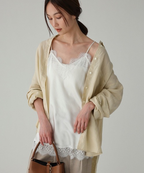 2026 SPRING COLLECTION+1で旬顔。こだわりの詰まったレースキャミソールーーー◆DETAILポイント◆・胸元と裾に繊細なレースを施したキャミソール。・甘すぎない、ランジェリーライクなトレンドデザイン。・華奢見えが叶う細めストラップ。アジャスター付きで好みの長さに調整可能。・取り入れるだけで旬のスタイリングに。◆FABRICポイント◆・上品な微光沢素材にーーー【BABYLONE / バビロン】"Be myself" 好きな色 好きなかたち 好きな着こなし 自分の好きは自分だけが知ってる 自分らしい自分を好きでいたい 時代のニュアンスを取り入れながらも まわりにとらわれない ブレないしなやかな女性たちへ【気になる商品は「お気に入り」登録を】ハートマークをクリックし、お好きなカラーを選んでお気に入りに登録すると在庫残り僅かの通知、再入荷通知などの情報を受け取ることができます。※商品の取り扱い方法につきましては、タグ等に記載されている「取り扱い上の注意」「洗濯表示」をご確認ください。※屋外での撮影画像は、光の当たり具合で色味が違って見える場合があります。あらかじめご了承ください。なお商品の色味は、スタジオ撮影の画像をご参照ください。