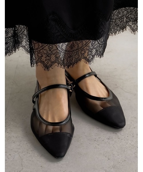 透ける抜け感。足元から旬を纏うシアーミュール▼デザイン今季のムードを象徴するシアーメッシュ素材が印象的な、ポインテッドトゥミュール。肌を美しく透かせるメッシュ生地と、華奢な細ストラップの重なりが、足元に繊細な奥行きを与えます。つま先はシャープなポインテッドトゥに仕上げることで、フラットに近いローヒールながらも脚長効果を発揮。サイドからバックにかけてのスッキリとしたストラップワークが、大人の女性にふさわしい「気品ある抜け感」を演出。どんなスタイルも瞬時にクラスアップさせる汎用性が魅力。デイリーから、少し背筋を伸ばしたいお出かけまで、日常のあらゆるシーンを華やかに彩る1足です。▼コーディネートトレンドのワイドデニムから覗かせてスパイスを加えたり、タイトスカートに合わせてミニマルなフェミニンスタイルを楽しむのもおすすめ。シアーな素材感が足元を軽く見せてくれるので、重たくなりがちな春夏のブラックコーデやロング丈アイテムとも相性抜群です。■モデル着用写真は撮影環境により、多少実際のカラーと異なる場合がございます。お気に入りショップにご登録いただきますと、ショップニュースを、いち早くお届けいたします。