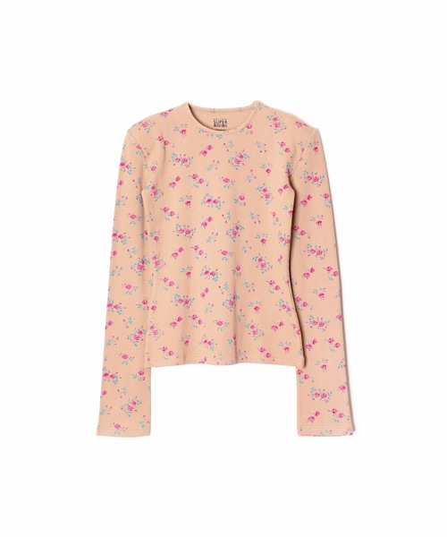 SUPER RIB PADDED SHOULDER CREW-NECK L/S TOPS (FLOWER) スーパーリブパディッドショルダークルーネックロングスリーブトップス (フラワー)