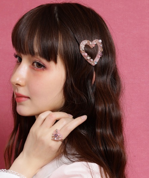 MILK 2026 Spring・ハートのフレームに、贅沢な装飾を施した、アクリル素材のダボピンタイプのヘアアクセサリー・フラワーモチーフやパール、キラキラと輝くストーン、ゴールドのリーフなど、ガーリーな要素を凝縮。ヴィンテージ小物のような繊細なディテールが魅力♪♡ Colors ♡A,ピンクマーブルB,ブラウンべっ甲♡ Material ♡アクリル , 真鍮