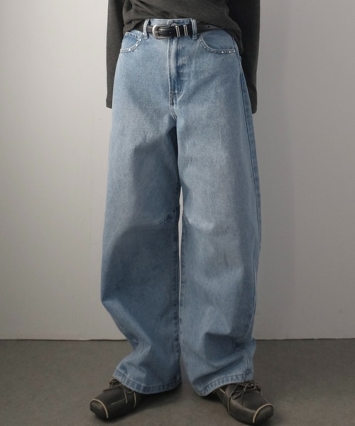 トレンドのカーブラインで美脚シルエットを演出。■ デザインコットン100%のしっかりとしたデニム生地を使用した、トレンド感のあるカーブラインワイドパンツ。ポケット周りにはさりげなく配置されたスタッズがアクセントになり、シンプルすぎない大人カジュアルな印象に。ウエストは後ろゴム仕様で、見た目はすっきりしながらもラクな穿き心地を叶えます。立体的なカーブラインが脚のラインをきれいに見せ、旬のシルエットが完成する1本です。■ 素材- コットン100%のしっかりとしたデニム素材。- 洗うほどに風合いが増すナチュラルな質感。- スタッズが映えるシンプルな生地感。- シーズン問わず使いやすい厚み。■ スタイリング- コンパクトなトップスと合わせてカーブラインを強調。- スウェットやニットと合わせて大人カジュアルに。- ショート丈トップスと相性抜群。- スタッズを活かしてシンプルなトップスと合わせるとバランス良く決まる。----------------透け感:なし伸縮性:なし裏地:なし----------------------------------------------------【スタッフが着用しました!】身長:158cm普段着用サイズ:S~Mサイズ今回着用サイズ:Mサイズ■ 着用感- 後ろゴムでラクなフィット感。- カーブラインが脚をきれいに見せる。- ワイドでも重たく見えない絶妙なシルエット。- デイリーに使いやすい快適な穿き心地。------------------------------------【お買い物をよりお楽しみいただく為に】▼お気に入り登録サイズ・カラーを指定して、♡マークをクリック![セール通知・ラスト1点の通知・完売アイテムの再入荷通知]を受け取ることができます。▼ブランドのお気に入り登録新商品や再入荷、タイムセールやクーポン等いち早くブランドのお得な情報を受け取ることができます。-------------------------------※取り扱い上のご注意染色の特性上、発汗や摩擦により色落ちしたり他のものに色移りすることがありますのでご注意ください。韓国ファッション オフィスカジュアルガーリー大人カジュアル韓国ファッション