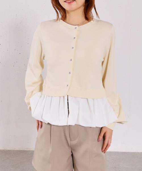 ■バルーン裾が映えるドッキングカーデ■【デザイン】・裾にシャツ素材のバルーンをドッキングした、存在感のあるデザイン・ふんわりとしたボリューム感で、女性らしく華やかな印象に・シンプルなデザインなので、甘さと大人っぽさのバランスが◎・袖はポワンとしたシルエットで、さりげなくトレンド感をプラス【素材感】・ニット部分はアンチピリング糸を使用し、毛玉になりにくい素材・程よい厚みでロングシーズン着やすい素材感・バルーン部分は縫い付け仕様で広がりすぎないのも嬉しいポイントーーーーーーーーーーーーーーー透け感:なし裏地:なし伸縮性:あり光沢感:なし生地厚さ:普通洗濯方法:可※詳しいお手入れ方法は商品についているタグをご覧くださいーーーーーーーーーーーーーーー※ご利用のモニター環境により、実際の色味と多少異なる場合がございます。【スタイリング】・デニムやスラックス合わせで、カーデを主役にしたコーデがおすすめ・スカート合わせで、甘さを抑えたフェミニンコーデにも◎・シンプルなボトムと合わせるだけで、着映えが叶う一枚… information … 欲しいitemをお気に入り登録(♡マークをclick) ・お買いのがし対策…完売itemの再入荷やラスト1点の情報をお知らせ ・欲しいitemをお得にget…pricedownになったらいち早くお知らせ ・スムーズ検索…ZOZOのお気に入りアイテムページで簡単checkできるから、再検索不要♪