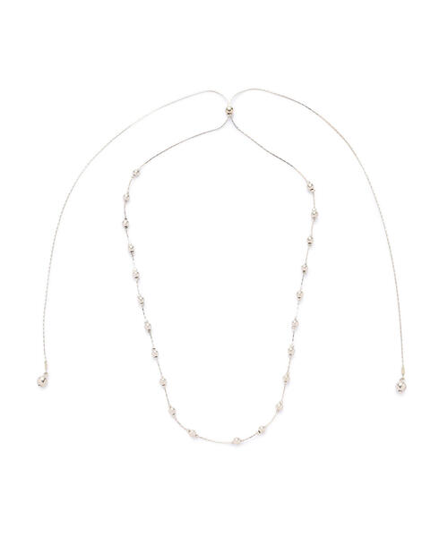 シンプルながら存在感のあるネックレス。ボールパーツを配したデザインで、コーディネートに甘すぎないアクセントを加えてくれます。チェーン先に付けたボールパーツも動きがでて女性らしい印象に。スライドパーツで長さ調節できます。 ※モデルの着用画像の場合、光の当たり具合により、実際の色味と異なって見えることがございます。色味は、商品単体の画像をご参照ください。