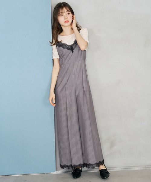 -*-*-*-2026 Spring&Summer collection-*-*-*-ストライプ柄の生地にレーストリミングを施したコンビネゾン。シャープな印象の中に女性らしい繊細さを添え、都会的で洗練された一枚に。ウエスト位置を高めに設定することで、自然なスタイルアップ効果も期待できます。インナーにはシアーカットソーやベロアカットソー(TT618202)を合わせたレイヤードスタイルがおすすめです。【 お買い物をお楽しみいただく為に 】▼お気に入り登録をオススメします。 『♡』をクリックすると…・《商品のお気に入り登録》で再入荷通知や ラスト1点の通知、セールやクーポンの通知も 受け取ることができます。・《ブランドのお気に入り登録》で新作商品や再入荷など、 お得な情報を受け取ることができます。