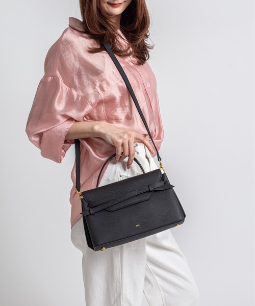 クロスリボンが印象的な「MIMI」2WAYバッグ Mサイズ 柔らかなシボレザーを使用した「MIMI(ミミ)」シリーズのMサイズバッグ。 コンパクトなサイズ感ながら、オン・オフ問わず取り入れやすく、コーディネートにさりげない抜け感を添えてくれるアイテムです。 クラシカルなシルエットにクロスリボンのディテールをあしらい、シンプルな中にもニュアンスのある表情をプラス。 リボン部分はスナップボタンで調節ができ、口元が大きく開くため荷物の出し入れもスムーズです。 取り外し可能なショルダーストラップ付きで、ハンドバッグとしてはもちろんクロスボディとしても使用可能。 コンパクトながら使い勝手の良さを備えた、日常使いに活躍するバッグです。 <商品スペック> 幅:約27cm 高さ:約16.5cm マチ:約9.5cm 持ち手:約21cm ハンドル立ち上がり:約7.5cm 重量:約500g 素材:牛革 ショルダーベルト:あり ショルダー長さ:約105〜118cm(取り外し可能) 開閉:ファスナー式 内側:オープンポケット×1 外側:オープンポケット×1 TOV(トーヴ)|日常を美しく彩る東京発バッグブランド “良い”“麗しい”という意味を持つ言葉に由来する TOV(トーヴ)。 世界中の人が手に取ったときに「良い」と感じられるものを届けたいという想いから名付けられました。 音楽や映画、旅、歴史などさまざまなカルチャーから得たインスピレーションをもとに、古き良きバッグの魅力を現代の感性でアップデート。 モダンでありながらどこかクラシックな佇まいが、大人の日常に自然に溶け込みます。 レザーはブランドオリジナルカラーに染色し、金具やディテールにも独自の美意識を反映。 伝統的なバッグづくりを大切にしながら、日常に寄り添う洗練されたデザインを提案する東京発のブランドです。 《商品の取り扱いに関するご注意》 ・天然皮革を使用している為、色むらや小さなキズ・スレなどが見られることが御座います。 ・または生前からのキズやスジなどが残っている場合が御座いますが、こちらは不良品では御座いませんので天然素材の風合いとしてご了承下さいませ。 気になる方はご購入お避け頂けましたらと思います。 ・摩擦、濡れによる色移りに気をつけてください。