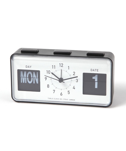 レトロな雰囲気がかわいらしい、卓上時計。 フリップ式のカレンダーがアクセントになっています。 上部のボタンで表示を切り替えるアナログさも◎ シンプルなモノトーンのデザインで、インテリアに馴染むアイテムです。 ギフトにもおすすめ。 ※本製品のカレンダー(日付・曜日)表示は自動では切り替わりません。日付・曜日の変更は手動でおこなってください。 ■使用電池・個数:単3形乾電池1本(別売り)