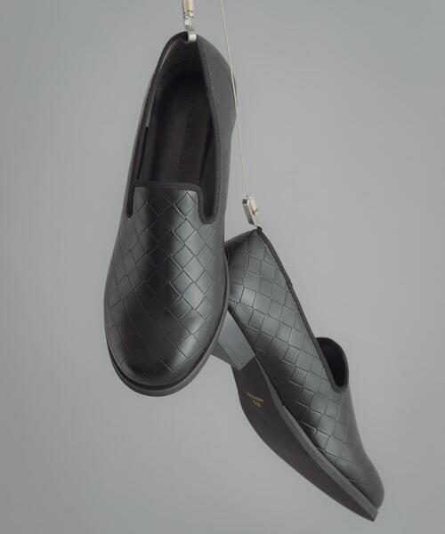 【フェイクレザーで上品に。トレンド感ある着こなしを格上げする一足】 ・立体的な表情のメッシュエンボスを表面に施した、洗練されたルックスのスリッポンが登場しました。 ・シンプルながらも奥行きのあるデザインで、履くだけでトレンド感のある着こなしができる、今季注目のフットウェアです。 ・着脱がスムーズなスリッポン仕様ながら、上品な素材感がラフになりすぎず、スタイリングを都会的に引き締めてくれます。 material 軽やかで馴染みやすいフェイクレザー生地を使用しています。本革のような高級感を持ちつつ、お手入れが簡単なのも嬉しいポイント。柔らかい素材感が足元を優しく包み込み、長時間の着用でも疲れにくい快適な履き心地を提供します。 styling 今の時期なら、ロングコートやワイドスラックスと合わせた、きれいめなモードスタイルのハズしとして。ボトムスの裾から覗くメッシュの質感が、重たくなりがちな冬の装いに軽やかさをプラスします。春先には遊び心のあるボトムスとも相性抜群。ボーダーTと合わせた、リラックス感のある春の大人カジュアルにも最適です。 【2026 Spring/Summer】【26SS】 ※靴箱破損につきましては、商品に不良が無い場合に限り出荷させていただいております。予めご了承ください。 ※サイズ詳細は、当社が独自で計測したサイズです。 重量(片足) : 約340g ※商品画像は、光の当たり具合やパソコンなどの閲覧環境により、実際の色味と異なって見える場合がございます。予めご了承ください。 ※商品の色味の目安は、商品単体の画像をご参照ください。 ▼お気に入り登録のおすすめ▼ お気に入り登録された商品は、マイページにて現在の価格情報や在庫状況の確認が可能です。 お買い物リストの管理にぜひご利用ください。 27.526.5
