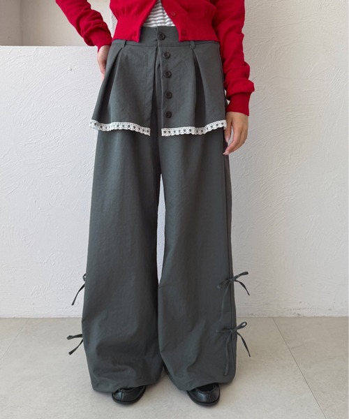 【kutir ladies/クティールレディース】 新作情報はInstagram公式アカウントからチェック! ↓ 【@kutir_ladies】 ------------------------------------------------------ -アイテム説明- 【スカート・パンツのレイヤード風◎太めのワイドシルエット】 プリーツスカートとワイドパンツをレイヤードしているように見える 1枚でインパクトのあるパンツです。 スカートの裾にはレースがドッキングされ、 パンツの裾にはkutir得意のリボン使い♪ 後ろのウエストのみゴム仕様でストレスフリーに着用していただけます。 ナイロンのようなハリ感のある素材で、春服としてはもちろん通年活躍します。 【推奨サイズ】 ~158cm Sサイズ 159cm~ Mサイズ -コーディネート‐ パンツにボリュームがあるため、 同日発売の配色リボンカーディガン(🔍645095)のような タイトなシルエットやジャスト丈のアイテムのトップスと合わせることで きれいなシルエットのスタイリングに。 春服にもピッタリです! ------------------------------------------------------ 透け感:なし 裏地:なし 伸縮性:なし 光沢感:なし 生地の厚さ:普通 ------------------------------------------------------ -スタッフ着用コメント- 身長:158cm/体型:普通/普段サイズ:Mサイズ/着用サイズ:Sサイズ サイズ感:ゆったりとしたサイズ感 素材感:ハリ感のあるナイロンのような素材 着心地:ストレスフリーに着用していただけます -kutirブランドコンセプト- "トレンド×kutir original" サイズやカラー豊富に展開中! 古着らしさにトレンドを取り入れた new style (WEB限定) ※サイト上のカラー名と、お届け商品に記載されているカラー名が異なる場合がございます。 ※ご覧いただく環境により、実物と色味が異なって見える場合がございます。ご了承ください。 【お買い物をよりお楽しみいただくために】 ▼商品のお気に入り登録(ハートマークをクリック) 完売カラーの再入荷通知や、ラスト1点の通知、セールの通知も受けることができます。 ▼ブランドのお気に入り登録 新商品や再入荷など、いち早くブランドのお得な情報を受け取ることができます。