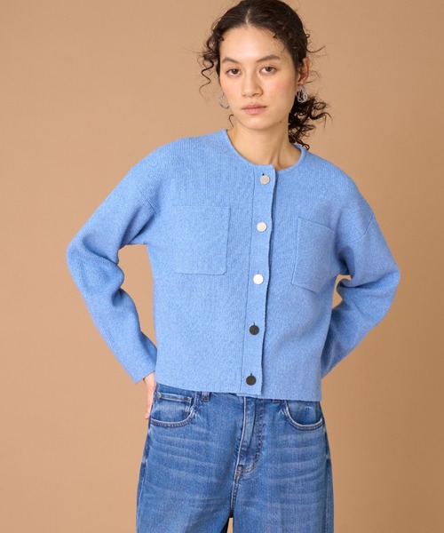 ■デザイン大きめのポケットがアクセントになったカジュアルテイストに仕上げたニットカーディガン。華奢ですっきりとした衿ぐり仕様にすることでカジュアルになりすぎず、抜け感のある印象です。しっかりとした肉感で編み立てられているのでジャケットライクに着ていただけます。■素材ポコポコした表面感が優しい印象のブークレ糸にストレッチが入っており、表面感が引き立つ素材です。コットンメインの素材なので、肌触りが柔らかく、吸湿性通気性に優れています。・水洗い可■サンプル撮影商品画像の商品はサンプルです。実際の商品とはサイズや色味、素材、デザイン等の仕様が若干変更になる場合がございます。