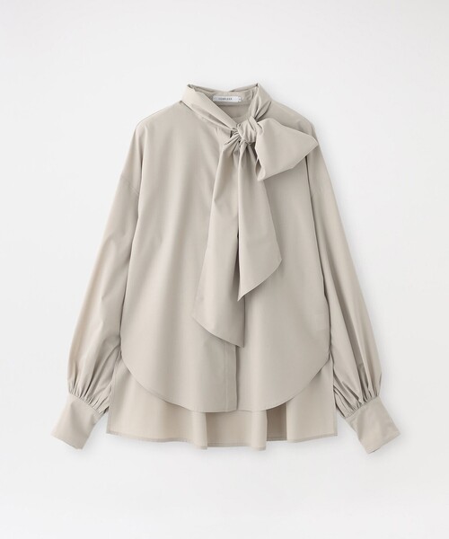 結び方で、首元の印象が変わるパフスリーブシャツ【素材】ポリエステル×レーヨンのブロード生地を使用。毛羽の少ないクリアな表面と、なめらかで心地よい肌触りが魅力です。ご家庭で手洗いが可能で、デイリーに扱いやすいイージーケア性もポイントです。【シルエット/デザイン】やや薄手のブロード素材を活かし、パフスリーブがふんわりと立体的に映える袖コンシャスなデザイン。ボウタイは取り外しができるので着こなしの幅も広がります。【スタイリング/その他】裾をボトムにインしてメリハリをつけることで、パフスリーブの立体感が際立ちます。ボトムはワイドパンツからIラインのスカートまで幅広く対応。ジャケットと合わせれば、セレモニーシーンに活躍してくれます。【お手入れ方法】こちらの商品は、手洗いでのお洗濯が可能です。━━━━━━━━━━━━━━━━━━━━━━━━━━お買い物をお楽しみ頂くために<商品のお気に入り登録>完売カラーの再入荷通知など、お得な情報をお届けします。<注意事項>この商品はサンプルでの撮影を行っています。実際の商品とイメージが異なる場合がございます。撮影環境により、光の当たり具合で色味が違って見える場合があります。あらかじめご了承下さい。