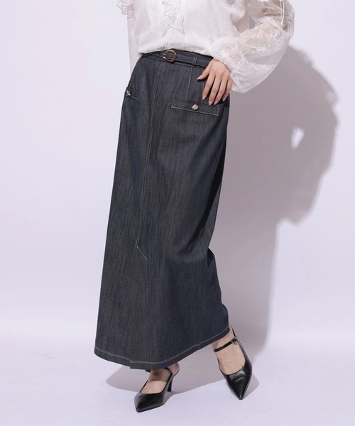 すとんとしたタイトシルエットが美しい脚のラインを演出するスカート。 ベルト付きのデザインでウエストマークでき、スタイルアップ効果をもたらします。 さりげない抜け感をプラスするスリット入りがポイント。 トップスをタックインしたコーディネートがおすすめです。 【ご注意】 ※撮影照明の関係により、実際の商品と色味が異なって見える場合がございます。 また、パソコン・スマートフォンなどの環境により、製品と画像のカラーが異なる場合もございます。 予めご了承ください。 ※商品画像はサンプルのため、色味やサイズ等の仕様に変更がある場合がございますので、予めご了承ください。