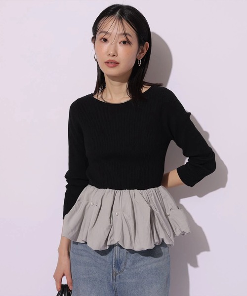 ペプラムデザインに煌びやかなパール調が施されたニット。 裾に向かってふんわりとボリューム感があり、女性らしいシルエットを楽しめます。 程よいゆとりのあるネックラインがデコルテを美しく見せるのもポイント。 パンツやタイトスカートと合わせたコーディネートがおすすめです。 【ご注意】 ※撮影照明の関係により、実際の商品と色味が異なって見える場合がございます。 また、パソコン・スマートフォンなどの環境により、製品と画像のカラーが異なる場合もございます。 予めご了承ください。 ※商品画像はサンプルのため、色味やサイズ等の仕様に変更がある場合がございますので、予めご了承ください。
