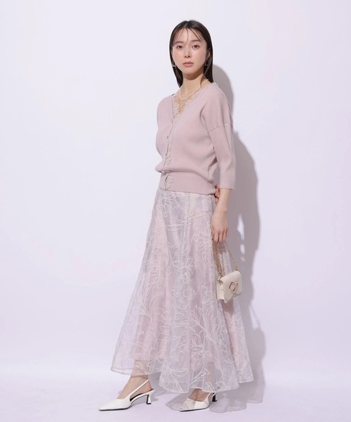 フラワーフロッキー素材が洗練された女性らしさをプラスするスカート。 ふんわりとしたフレアシルエットで、動くたびに自然な揺らめきを演出します。 バックのウエストゴム仕様がラクな着心地を実現。 季節の変わり目のお出かけスタイルに重宝したいアイテムです。 【ご注意】 ※撮影照明の関係により、実際の商品と色味が異なって見える場合がございます。 また、パソコン・スマートフォンなどの環境により、製品と画像のカラーが異なる場合もございます。 予めご了承ください。 ※商品画像はサンプルのため、色味やサイズ等の仕様に変更がある場合がございますので、予めご了承ください。